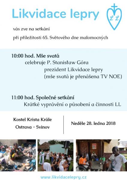 V neděli 28. ledna 2018 u příležitosti 65. Světového dne malomocných se uskuteční přednáška o činnosti LL v Kostele Krista Krále v Ostravě - Svinov.