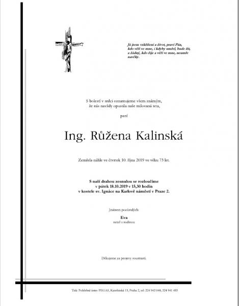S bolestí v srdci jsme přijali zprávu, že nás ve čtvrtek 10. října navždy opustila naše bývalá kolegyně Růžena Kalinská ve věku 73 let.