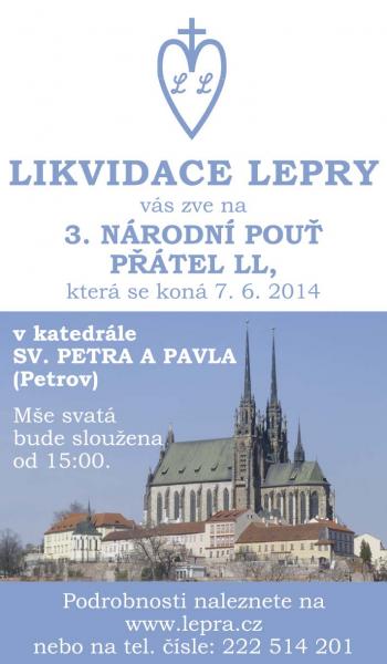 rádi bychom Vás pozvali v sobotu 7. června 2014 na 3. NÁRODNÍ POUŤ přátel LL do Brna, do katedrály sv. Petra a Pavla na Petrově. V 15:00 hod. zde bude celebrovat mši svatou P. Dr. Vojtěch Eliáš, prezident LL.