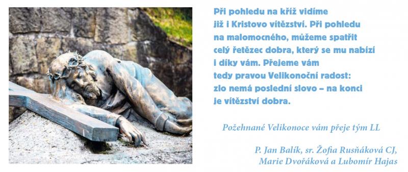 Přejeme vám požehnané Velikonoce! Přejeme vám požehnané Velikonoce! Velice děkujeme za podporu díla LL "Ježíš vstal z mrtvých, aby zrušil naši izolaci a spojil nás v jedno. S Ním nejsme nikdy sami."